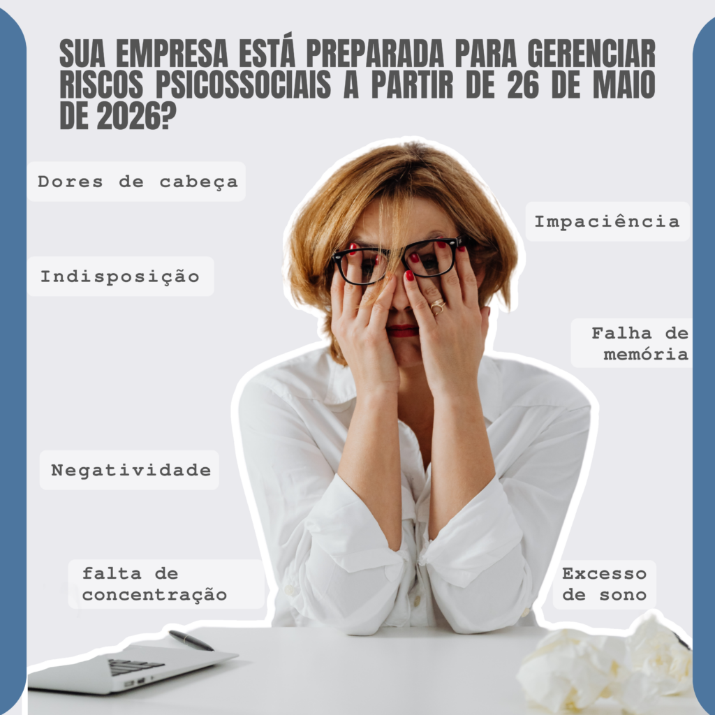 Esses riscos, quando não gerenciados, podem resultar em afastamentos previdenciários, aumento de passivos trabalhistas, queda de produtividade e danos reputacionais.